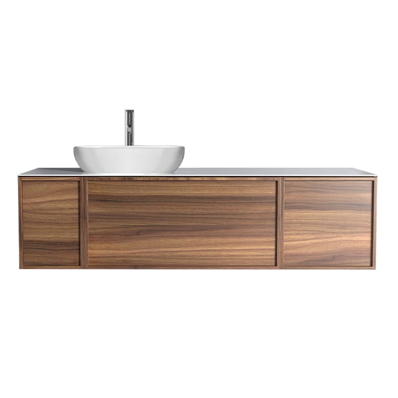 The special feature of our Tripoli collection is that the furniture is made with a solid walnut base, which gives a luxurious feeling at first glance. This bathroom set is proof that you can mix round and square shapes, because when they fit together well the end result is fabulous. Enjoy the harmony of calming colours every day!